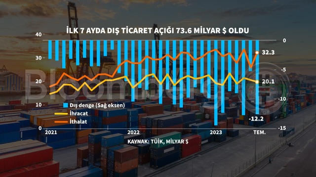 Türkiye'de Temmuz ayında çift haneli dış ticaret açığı kaydedildi.