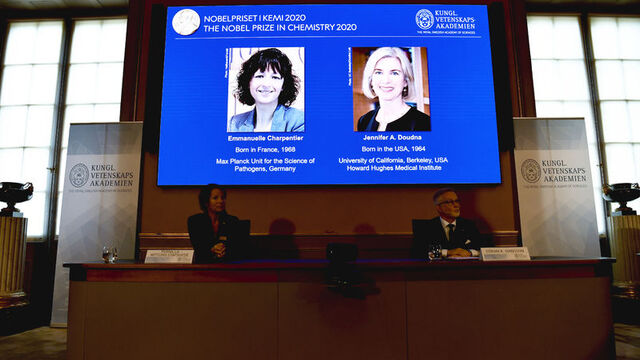 Nobel Kimya Ödülü bu yıl, "genom kurgulamasına olanak sağlayan yöntemin geliştirilmesine katkılarından ötürü", Fransız mikrobiyolog Emmanuelle Charpentier ile ABD'li biyokimyacı Jennifer A. Doudna'ya verildi.