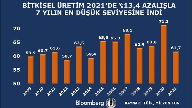Bitkisel üretim bu yıl, 2020'ye göre tahıllar ve diğer bitkisel ürünlerde yüzde 13,4 azalırken, sebzelerde yüzde 1,8 arttı. Meyveler, içecek ve baharat bitkilerinde ise üretim yüzde 5,4 yükseldi.