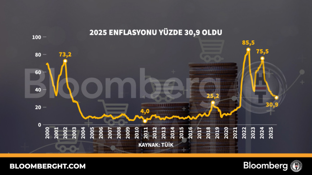 Bloomberg HT Grafik 2025 enflasyonu yüzde 30,9 oldu 2025 enflasyonu yüzde 30,9 oldu Giriş: 05 Ocak 2026, Pazartesi 18:06 Güncelleme: 05 Ocak 2026, Pazartesi 18:06