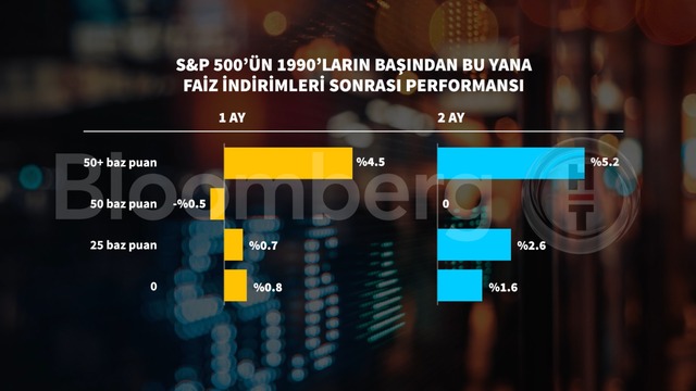 1990'ların başından bu yana S&P 500, 50 baz puandan daha büyük bir indirimi takip eden ayda ortalama yüzde 4,5'lik prim yaptı. Ancak aynı dönemlerde aylık yüzde 0,8'lik olağan primini yakalayamadı. Piyasa ortalama olarak 50 baz puanlık bir indirimin ardından geriledi.