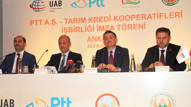 Turhan, Tarım ve Orman Bakanı Bekir Pakdemirli ile birlikte Tarım Kart için PTT ile Türkiye Tarım Kredi Kooperatifleri arasında işbirliği yapılması dolayısıyla düzenlenen imza törenine katıldı.