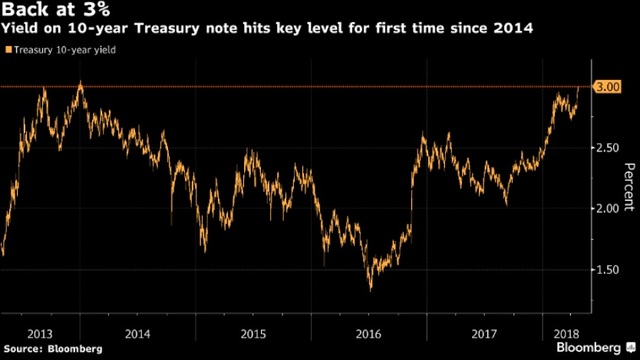 ABD'de 10 yıllık Hazine tahvillerinin faizi, 2014 yılından bu yana ilk kez yüzde 3'e ulaştı.