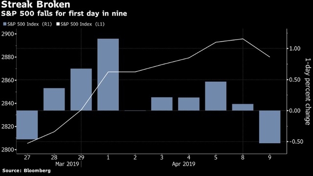 ABD'de borsa Dow Jones öncülüğünde gerilerken, S&P 500 Endeksi'nin de sekiz günlük rallisi sona erdi.
