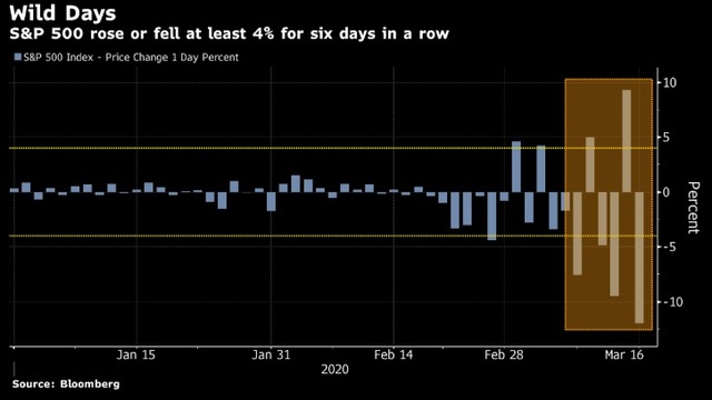 Kapanışta, Dow Jones endeksi yaklaşık 3000 puan değer kaybetti ve yüzde 12,93 azalışla 20.188,52 puana geriledi. Endeks 1987'de yaşanan "kara pazartesi"nden bu yana kaydedilen en büyük kaybını yaşadı.