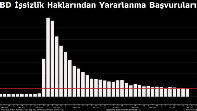 İşsizlik başvurularındaki düşüş Kovid-19 vakalarının rekor seviyelere tırmanmasına karşın istihdam piyasasında kademeli bir iyileşme yaşandığını işaret ediyor.