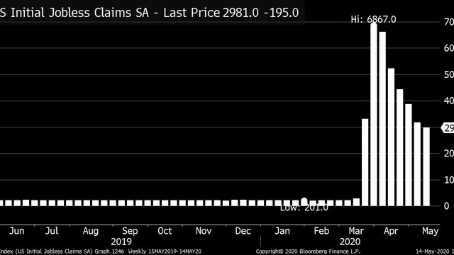 ABD'de işsizlik maaşına başvuranların sayısı 9 Mayıs'ta sona eren haftada 2.98 milyon oldu. Başvurular önceki hafta 3.1 milyon olmuştu.
