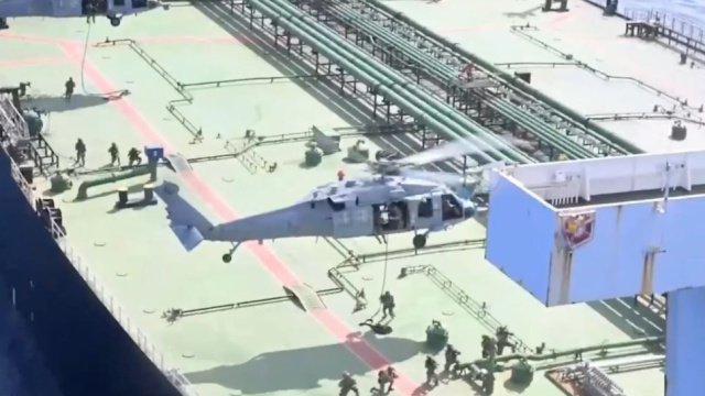 Paylaşımda, ABD Hint-Pasifik Komutanlığının (INDOPACOM) sorumluluk alanında seyreden, yaptırım uygulandığı ve İran'dan petrol taşıdığı belirtilen bayraksız "M/T Majestic X" isimli tankere müdahalede edildiği anlara yer verildi.