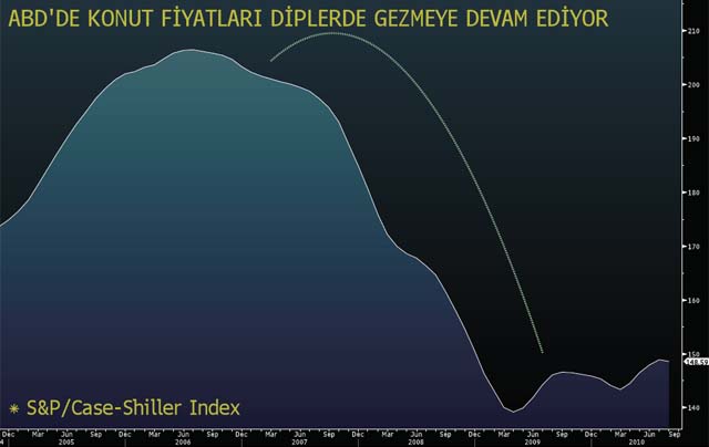 S&P / Case-Shiller endeksi son gelen verilerle, konut fiyatları bir miktar dip yapmış gibi görünse de aslında sürekli düşen fiyatlara bir miktar tepki olarak o seviyeleri koruyor.
