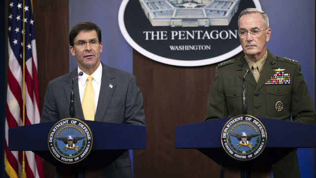 Bakan Esper, ABD Genelkurmay Başkanı Orgeneral Joseph Dunford ile Savunma Bakanlığında (Pentagon) ortak basın toplantısı düzenledi.