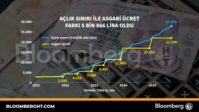 Bloomberg HTGrafikAçlık sınırı ile asgari ücret farkı 5 bin 866 lira oldu