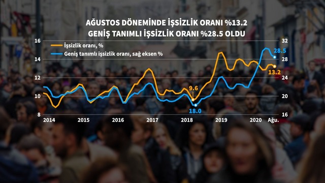 İşsizlik Ağustos döneminde yüzde 13,2 oldu. Temmuz döneminde işsizlik yüzde 13,4 olarak kaydedilmişti.