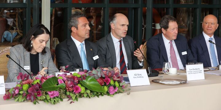 Koç Holding'in ev sahipliği yaptığı toplantıya, Dışişleri Bakanı Hakan Fidan ile Birleşik Krallık'ın Avrupa'dan Sorumlu Devlet Bakanı Leo Docherty onur konukları olarak katıldı.
