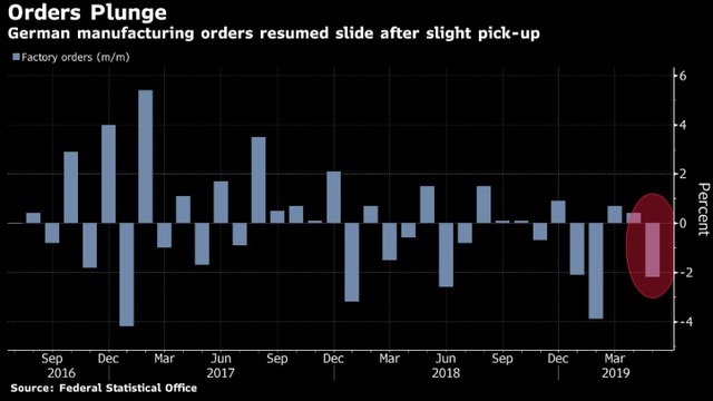 Fabrika siparişleri verisinin volatil olmasına karşın, rakamların hayal kırıklığına uğrattığına da pek şüphe yok. Mayıs ayında kaydedilen yüzde 2.2'lik düşüş, Bloomberg anketine katılan ekonomistlerin yüzde 0.2'lik düşüş beklentisinin çok altında.