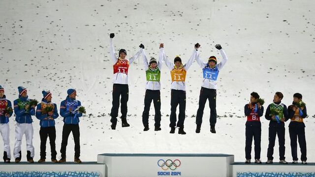 RusSki Gorki Kayakla Atlama Merkezi'nde gerçekleştirilen mücadelede, Andreas Wank, Marinus Kraus, Andreas Wellinger ve Severin Freund 4'lüsüyle yarışan Almanya, toplam 1041.1'lik takım puanıyla şampiyon oldu.