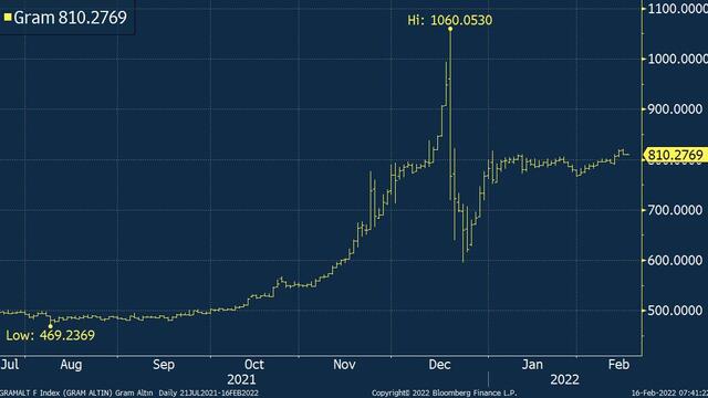 Altın fiyatları, Rusya’nın bazı birliklerini Ukrayna sınırından çekeceğini açıklaması sonrasında 8 ayın zirvesinden geriledi. Gram altın da dolar kurundaki sınırlı hareketten dolayı küresel altın fiyatlarındaki seyri takip etti.