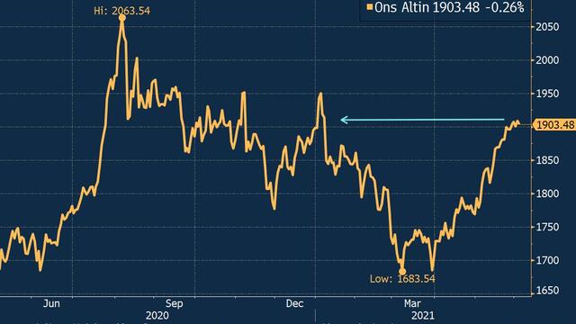 2021 yılına son 40 yıldaki en kötü ilk çeyrek performanslarından biriyle başlayan ons altın, Nisan ayından bu yana kademeli bir yükselişle 1.900 doların üzerine kadar tırmandı. Sene başından bu yana olan kayıplarını silen ons altın, Mayıs ayını neredeyse 1 senenin en büyük kazancıyla kapatmıştı.