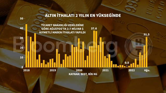 Türkiye'nin 2022 yılı Ağustos ayında altın ithalatı son 23 ayın en yüksek seviyesinde gerçekleşti.
