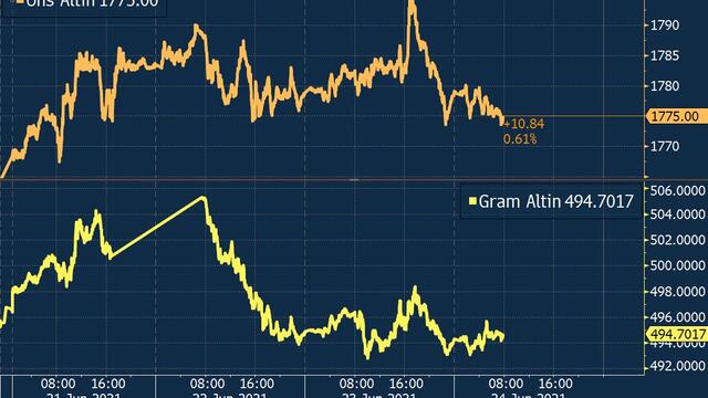 Altın, yatırımcıların Fed yetkililerinin yorumlarına odaklanmasıyla 1.770 dolar civarında yatay bir seyir izliyor. Gram altın ise dolar/TL’deki yükselişin küresel altın fiyatlarındaki düşüşü dengelemesiyle 494 TL civarında seyrediyor.