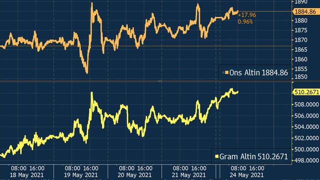 Ons altın, son 40 yıldaki en kötü performanslarından biriyle 2021’e başladıktan sonra Nisan ayı başından bu yana yükseliş eğiliminde. Son üç haftayı da art arda kazançla kapatan ons altın, yeni haftaya 1.884 dolar ile başladı ama hala aşırı alınmış bölgede bulunuyor.