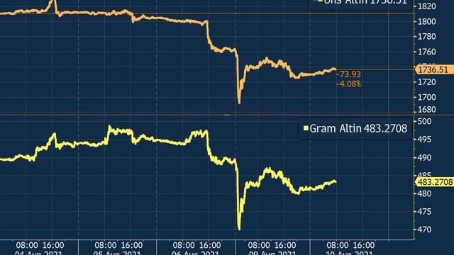 Altın, Fed’in varlık alım programını beklenenden daha erken azaltmaya başlayacağına dair endişelerle keskin bir düşüş yaşayarak 1.740 doların altına inerken değerli metalin 50 günlük hareketli ortalaması 200 günlük ortalamasını aşağı yönlü kesti. Gram altın ise küresel altın fiyatlarındaki düşüşün dolar/TL’deki yükselişten ağır basmasıyla geriledi.