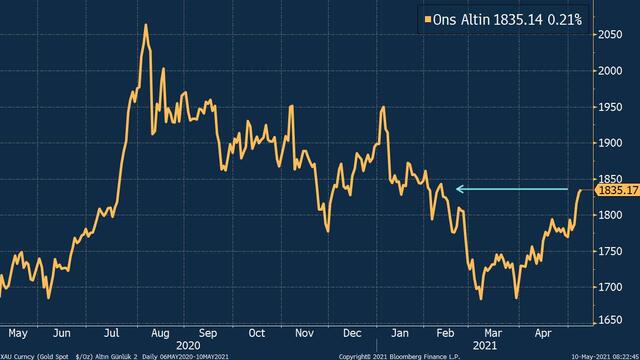 Ons altın geçen haftaya 1.770 dolar civarında başladıkta sonra hafta boyunca dar bir fiyat aralığında seyretmişti. Perşembe günü 1.800 doların üzerine çıkan ons altın, cuma günü açıklanan istihdam verisi sonrasında 1.840 dolar seviyesine kadar tırmanmıştı.