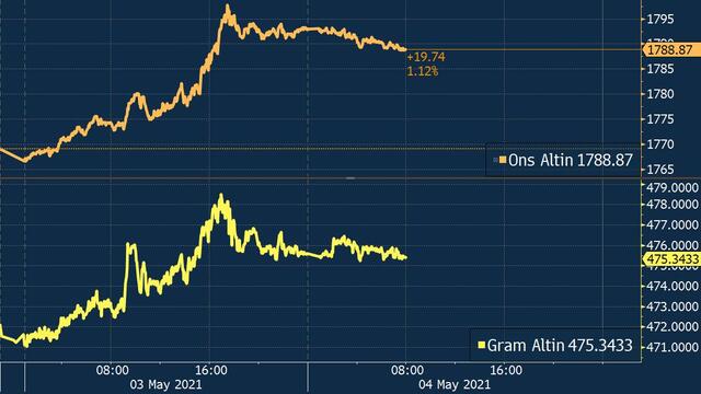 Nisan ayında dört haftanın üçünü kazançla kapatarak 2021 yılında ilk defa bir ayı kazançla kapatan ons altın, sene başından bu yana hala yüzde 5,8 aşağıda bulunuyor.