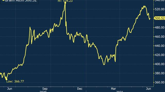 Küresel altın fiyatları ve dolar/TL’deki yükselişle beraber Haziran başında tüm zamanların zirvesi olan 534 TL’ye yakın bir seviyede bulunan gram altın, küresel altın fiyatlarındaki düşüşe rağmen dolar/TL’nin hafta başından bu yana neredeyse yüzde 4 yükselmesiyle 500 TL sınırında tutundu.