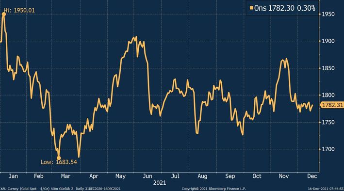 Ons altın, haftanın ilk iki günü dar bir bantta işlem gördükten sonra Fed toplantısı öncesinde 1.760 dolara civarına gerilemişti. Ons altın, Fed toplantısının yarattığı belirsizliğin kalkmasıyla son iki gündkei kayıplarını silerek hafta başına göre yatay bir seyir izliyor.