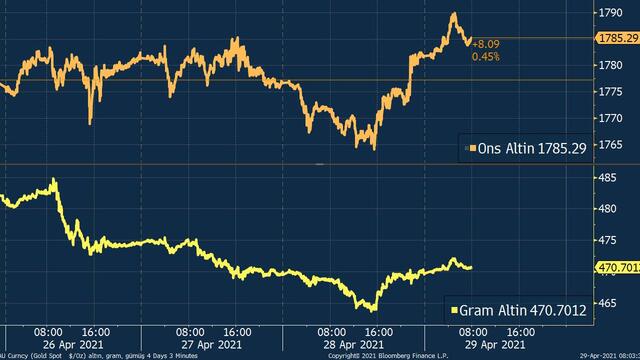 Ons altın, aşı gelişmeleri ve tahvil faizlerindeki yükselişle 2021 yılının ilk üç ayını kayıpla kapatarak son 40 yıldaki en kötü ilk çeyrek performansını gerçekleştirdikten sonra Nisan ayını kazançla kapatmaya doğru ilerliyor.
