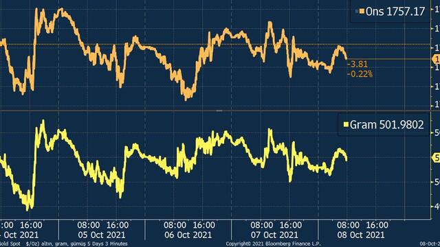Fed’in varlık alımı azaltımına dair mesajlarıyla geçen hafta perşembe gününü 5 ayın en düşüğünde kapatan ons altın, yeni haftaya istihdam piyasası görünümünden destek bularak girmişti. Çarşamba günü tahvil faizlerindeki yükseliş ve dolardaki güçlenmeyle birlikte düşüş kaydeden ons altın, tarım dışı istihdam verisi öncesinde 1.757 dolar civarında bulunuyor.