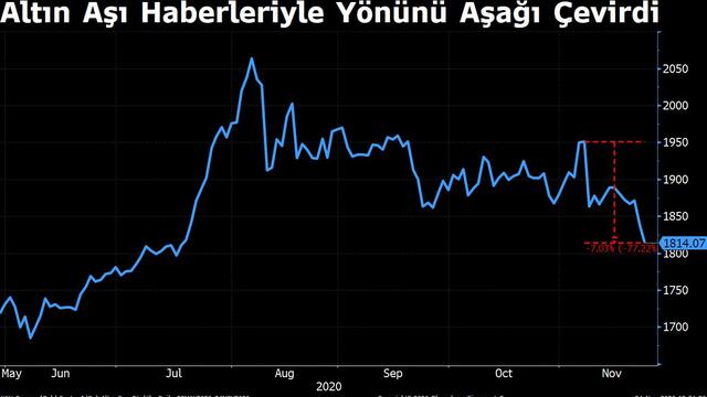 Pfizer ve BioNTech’in aşı geliştirdiğine dair haberlerin duyurulduğu ilk gün olan 9 Kasım’dan bu yana altın yüzde 7 civarında değer kaybetti.
