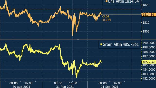 Geçen hafta Jackson Hole sempozyumu öncesinde dolar/TL ve küresel altın fiyatlarındaki gerilemeyle beraber 480 TL seviyesine kadar inen gram altın, toplantı sonrasında dolar kurunun zayıflamasına rağmen küresel altın fiyatlarındaki yükselişle pazartesi günü yatay bir seyir izlemişti. Gram altın, dolar kurundaki düşüşün devam etmesiyle birlikte çarşamba günü 485 TL’ye geriledi.