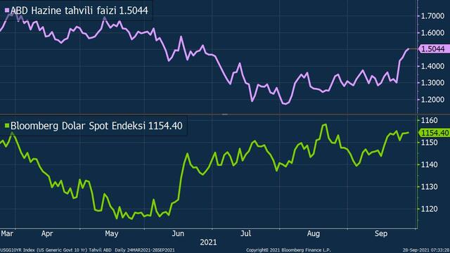 10 yıl vadeli ABD Hazine tahvillerinde yaşanan satışlar sonrasında faizler Haziran ayından bu yana ilk defa yüzde 1,50’nin üzerini gördü. Bloomberg Dolar Spot Endeksi de yükselerek 1.154 seviyesine çıktı.