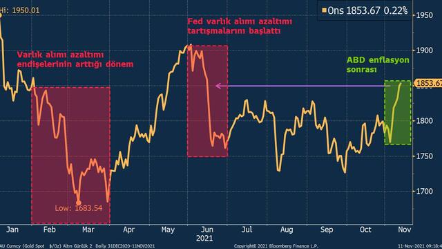 Altın 2021 yılına son 40 senedeki en kötü performansıyla başladıktan sonra yıl başından beri verdiği kayıpları hala telafi edemedi. Sene başında varlık alımı azaltımı endişelerinin ilk defa gün yüzüne çıkması, tahvil faizlerinin yükselmesi ve doların kuvvetlenmesiyle Mart ayında 1.683 dolar ile bu yılın en düşük seviyesini gören ons altın, sonrasında Haziran ayına kadar kademeli bir yükseliş serisi yakalamıştı.