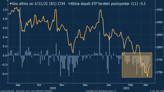 Altının ons spot fiyatı, tahvil faizlerindeki gerilemeyle son üç seansta yükselerek pazartesi gününden bu yana yüzde 3’ten fazla artmasına rağmen, altına dayalı borsa yatırım fonlarından çıkış devam ediyor.