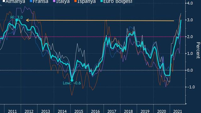 Eurostat verilerine göre, Euro Bölgesi’nde yıllık enflasyon Ağustos ayında yüzde 3’e yükselerek 10 yılın zirvesine ulaştı. Bloomberg anketine katılan ekonomistlerin beklentisiyse enflasyonun yıllık yüzde 2,7 olarak gerçekleşmesi yönündeydi.