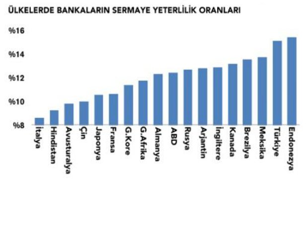 Basel II ile birlikte Bankaların sermaye gereksinimin artacağı düşünülürken, daha çok ne boyutta olacağı önem taşıyor. Basel II kriterlerinin öngördüğü %8’lik sermaye yeterlilik oranına karşılık, Türk Bankacılık sektörünün bunun bir hayli üzerinde, %16,5 olduğunu görüyoruz. Ancak bankalardan bankalara farklılık göstermesi açısından, bazı bankaların %12 bandına yaklaşması söz konusu olabilir. %12 oranı ise, BDDK’nın kriteri olması açısından önemli. BDDK bu oranın altına düşen bankaların şubeleşmesinin devam etmesine negatif bakıyor. Bu oranların, bankaların mevcut kredi portföylerini artırmalarıyla doğru orantılı olarak yetersiz kalıp kalmayacağını takip edeceğiz. Dünya genelinde bankacılık sektörlerinin sermaye yeterliliğine baktığımızda Türkiye, Endonezya’dan sonra 2.sırada yer alıyor. Bu oran ABD’de %12 seviyelerindeyken. Basel II gelse dahi, Türk bankaları sermaye yeterliliği konusunda sıkıntı yaşayacak gibi durmuyorlar.