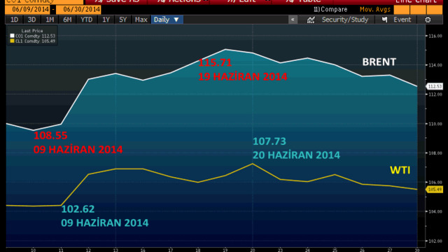 Musul'un düştüğü günlerde, bir de Ukrayna Rusya arasındaki soğuyan tansiyonun bir Ukrayna helikopterinin düşürülmesi ile tekrar gerilmesi, petrol fiyatları açısından itici güç olabilecek bütün koşulların sağlanmış olmasına neden oldu. Böylece Avrupa gösterge petrolü Brent'i 9 ayın zirvesine taşıyan süreç başladı.