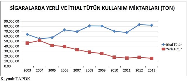 Raporda yer alan şu tespitler dikkat çekici: “Tekel’in 2008 yılında özelleştirilmesi ve Tütün Fonu’nun kademeli olarak azaltılması sonucunda Türkiye sigara pazarını ele geçiren çokuluslu sigara şirketleri, sigara harmanlarında giderek artan miktar ve oranlarda ithal tütün çeşitlerini kullanarak maliyetlerini düşürmüşler, yükseltilen vergilere rağmen karlılıklarını artırmışlardır. Ülke tütüncülüğümüz ise bu durumdan üretim ve çiftçi sayısının azalması şeklinde tepki vermiştir. Ülke topraklarında yetişen yerli tütünlerin sigaralarda kullanımı 2003’te %42,07 iken bu oran 2008’de TEKEL’in sigara biriminin özelleştirilmesinden sonra hızla azalarak 2014 yılı itibarıyla %15’e düşmüştür.”
