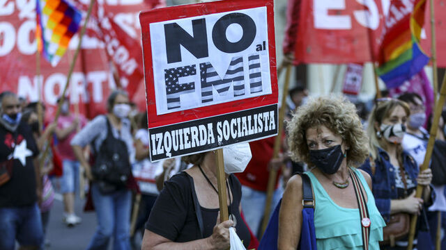 Başkent Buenos Aires'te sol görüşlü siyasi grupların ve sosyal organizasyonların çağrısıyla toplanan binlerce kişi, Devlet Başkanı Alberto Fernandez hükümetinin IMF ile anlaşmasına tepki göstermek için şehir merkezinde bir araya geldi.