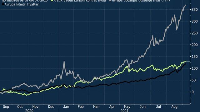 Karbon izin fiyatlarının artması da kömürden elektrik üretimini daha maliyetli bir hale getirerek Avrupa ve İngiltere’de elektrik fiyatlarının rekor kırmasına neden oldu.