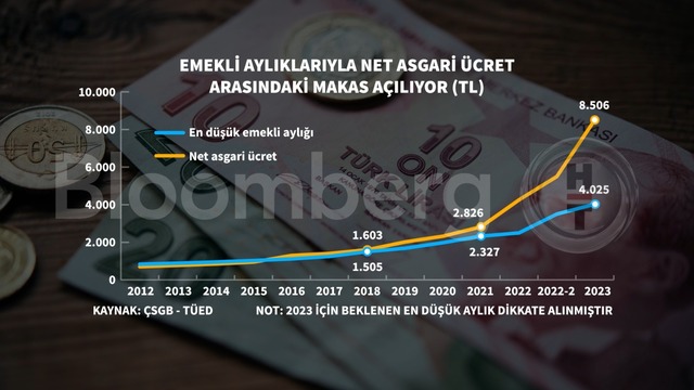 2023'te ise asgari ücret 8 bin 506 TL'ye yükseltilirken en düşük emekli aylığının 4 bin-4 bin 500 aralığına yükselmesi bekleniyor.