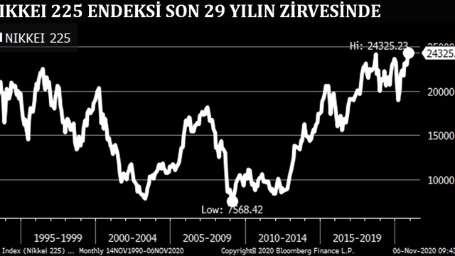 Yatırımcılar ABD'den gelecek seçim sonuçlarını beklerken Japon Nikkei endeksi 1991 yılından bu yana en yüksek seviyede kapanış yaptı.