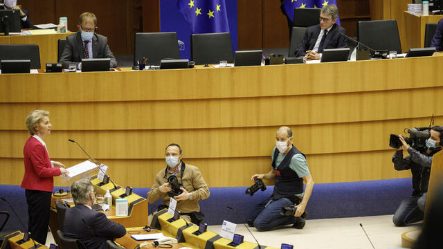 Avrupa Komisyonu Başkanı Ursula von der Leyen, Çarşamba günü Briksel'de Avrupa Parlamentosu'na, "Bu Avrupa'nın anı," dedi ve "Ya tek başımıza ilerleyecek ve ülkeleri, bölgeleri ve insanları geride bırakacağız ve sahip olanlar ve sahip olmayanların bir birliğini kabul edeceğiz, ya da bu yolu birlikte yürüyeceğiz" şeklinde konuştu.