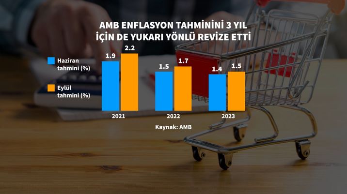 2021 enflasyon tahmini yüzde 1,9'dan yüzde 2,2'ye çıkarıldı. 2022 tahmini de yüzde 1,5'ten yüzde 1,7'ye çıkarıldı. 2023 tahmini yüzde 1,5 oldu.