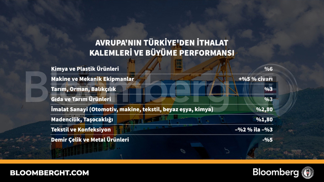 Bloomberg HTGrafikAvrupa'nın Türkiye'den ithalat kalemleri ve büyüme performansı