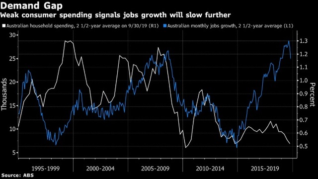 Avustralya ekonomisi son çeyrekte, faiz indirimleri, ve hükümetin vergi iadelerinin hanehalkı karcamalarını teşvik edememesinden dolayı yavaşladı ve Merkez Bankası’nın gelecek sene ek parasal genişlemeye ihtiyaç duyacağı yönündeki beklentileri artırdı.