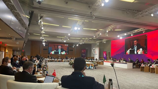Nebati, "G20 Maliye Bakanları ve Merkez Bankası Başkanları Toplantısının ilk oturumunda, küresel enflasyonist baskılar ve emtia fiyatlarındaki gelişmeler ışığında, olumsuz yayılmalar ve toparlanmaya yönelik risklere karşın beraber hareket etmenin önemine vurgu yaptık." ifadesini kullandı.