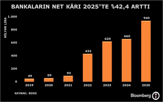 Bankacılık 2025 toplam kârı yıllık yüzde 42,4 artışla 940,2 milyar lira oldu